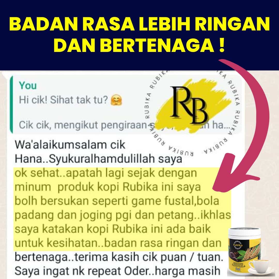 Kopi Rubika ini dirumus Khas dengan Bahan Semulajadi dan Tiada Langsung Bahan Kimia Terlarang. Dijamin Selamat dengan Kelulusan KKM. Alhamdulillah Setakat Ini Memang Tak Ada Feedback Negative dari Pelanggan tentang Sebarang Masalah Komplikasi Semasa Amalkan Rubika.